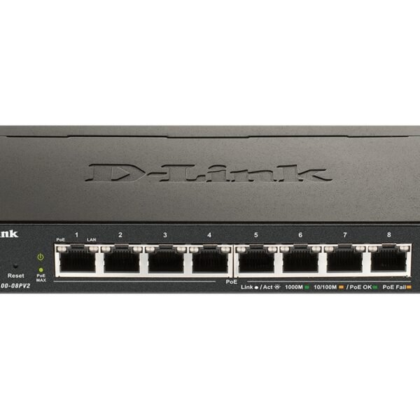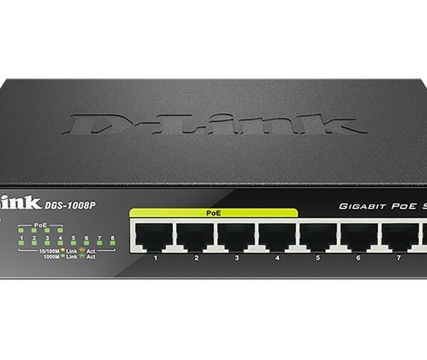 Original price was: $77.99.$53.98Current price is: $53.98.D-Link DGS-1008P network switch Unmanaged Gigabit Ethernet (10/100/1000) Power over Ethernet (PoE) Black